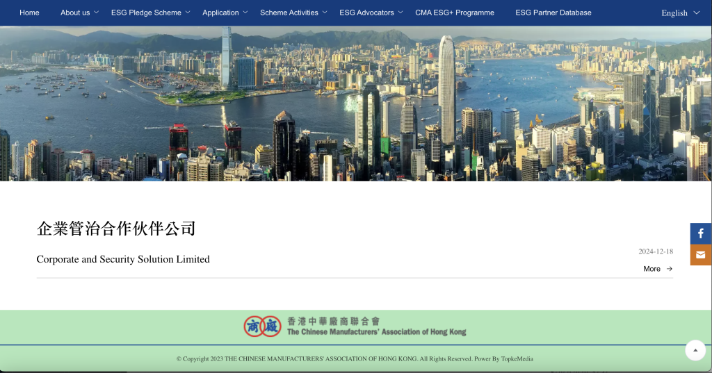 We are proud to announce that we are become the ESG Corporate Governance Partner of The Chinese Manufactures Association of Hong Kong. This initiative is a significant step in our ongoing commitment to environmental, social, and governance (ESG) principles that drive responsible business practices.
