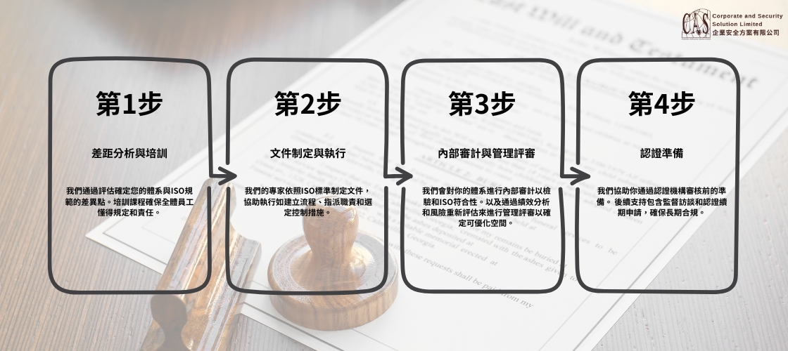 在 CASSolution,我們專注於提供頂級 ISO 諮詢服務 幫助企業提高標準並獲得 ISO 認證。我們經驗豐富的顧問團隊致力於引導您完成 ISO 合規的複雜流程,確保順利且有效率的認證之旅。
